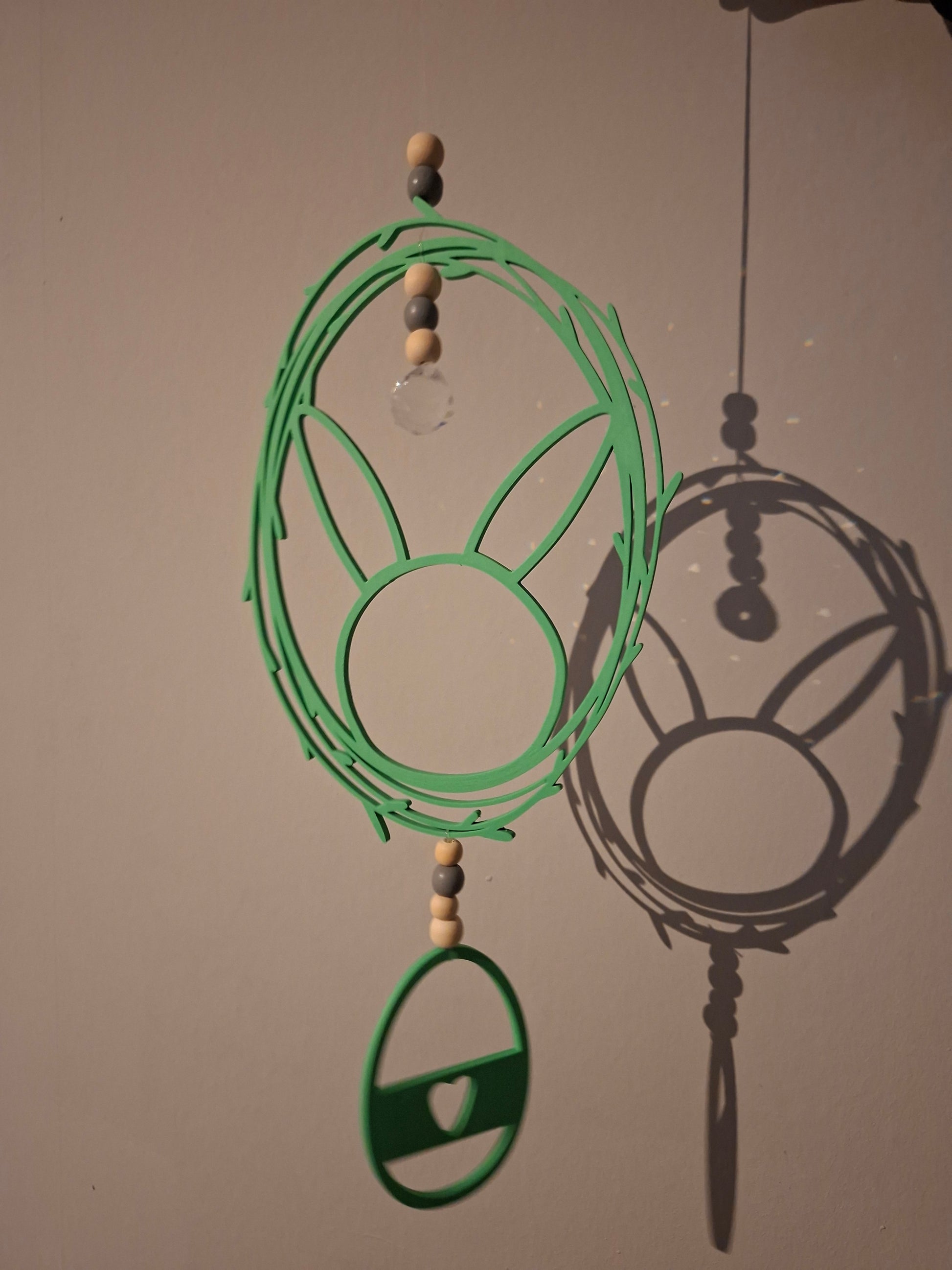 Der Oster Sonnenfänger besteht aus Holzperlen und einem Kristal . Die Kleinteile könnten sich lösen ,daher besteht sie Gefahr das Kleinkinder die Kleinteile verschlucken . Bitte niemals unbeaufsichtigt lassen. Erstickungsgefahr!!!
